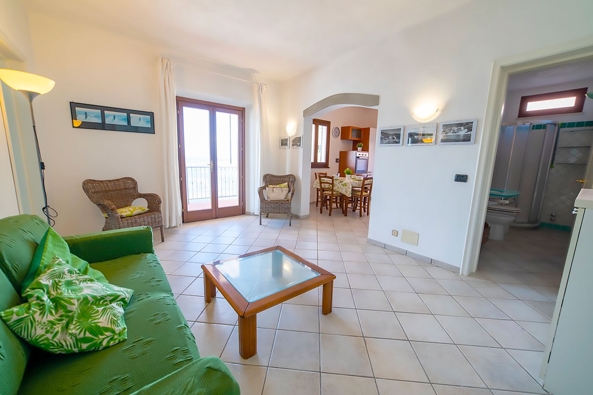 Und das ist noch nicht alles! Die Wohnung Gabbiana verfügt ausserdem über eine Terrasse mit Meerblick, perfekt für Abendessen im Freien mit Blick auf die atemberaubenden Sonnenuntergänge der Insel.