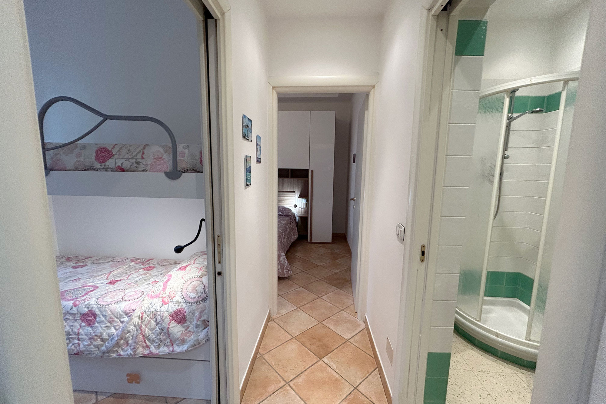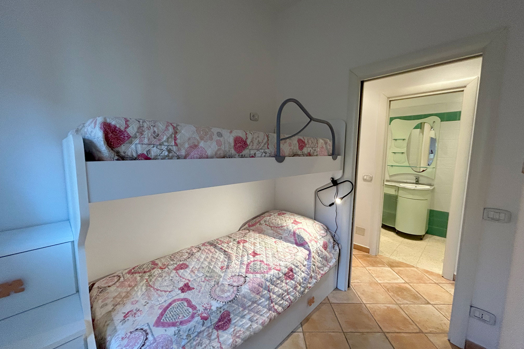 La zona notte è composta da una camera matrimoniale con bagno en suite, una camera con un letto alla francese, una terza camera con un letto a castello ed un secondo bagno, anche questo con doccia.