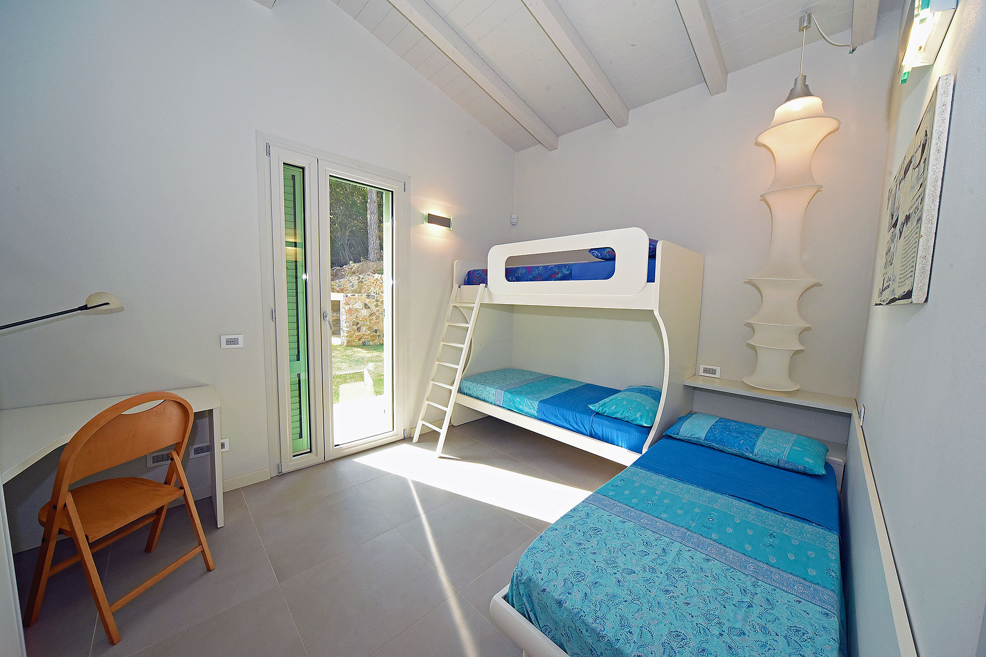 La Villa è arredata con grande cura e mobili di grande case di design italiani (Zanotta, Molteni, lampade di Le Corbusier, Munari…), ma è anche molto ‘family friendly’. Su richiesta e senza supplemento si può avere un lettino da campeggio, un seggiolone, un mini tavolo con tre sedie, bicchieri e posate per bambini….